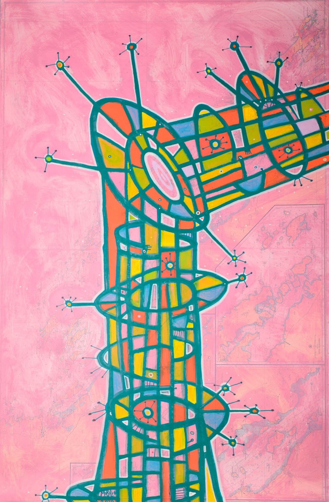 oil on nautical map 66cm x 100cm